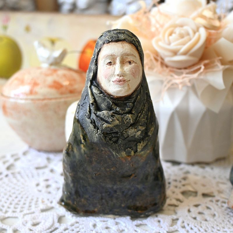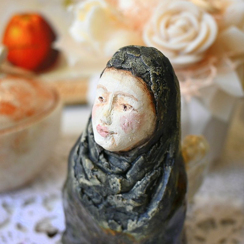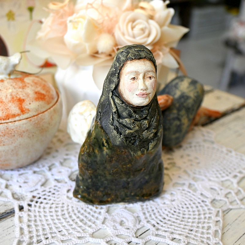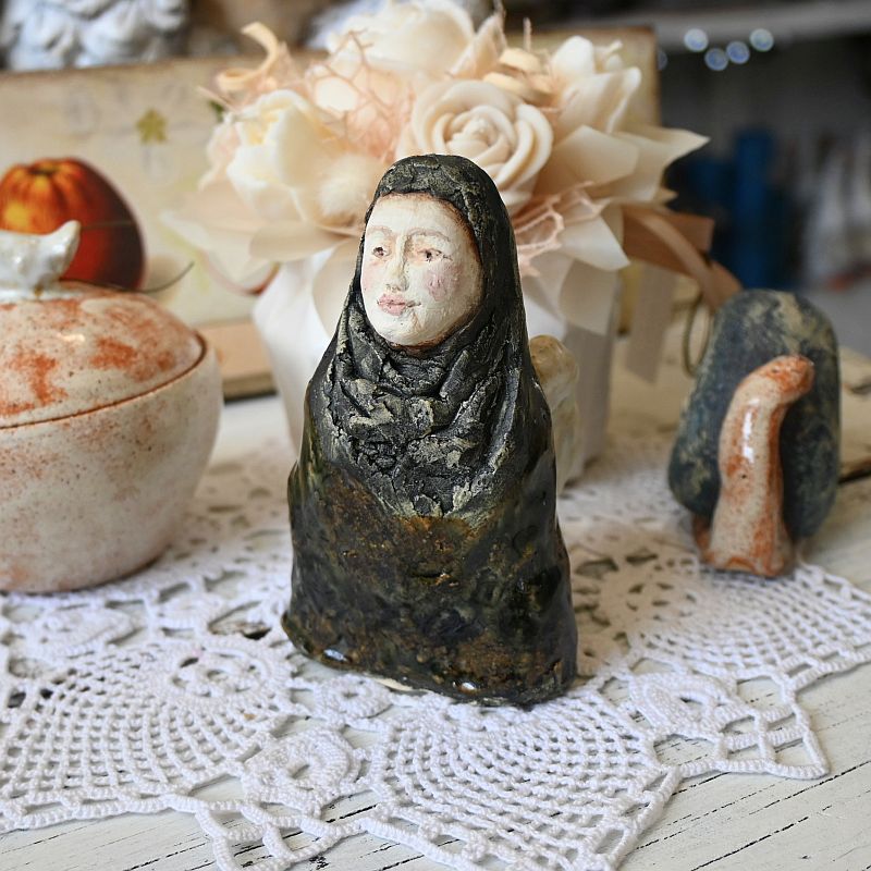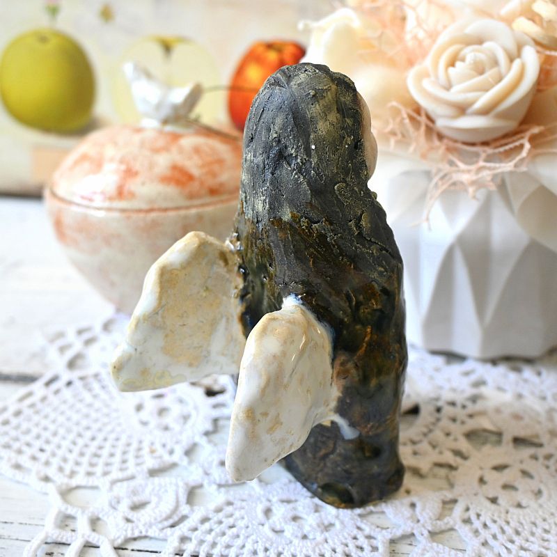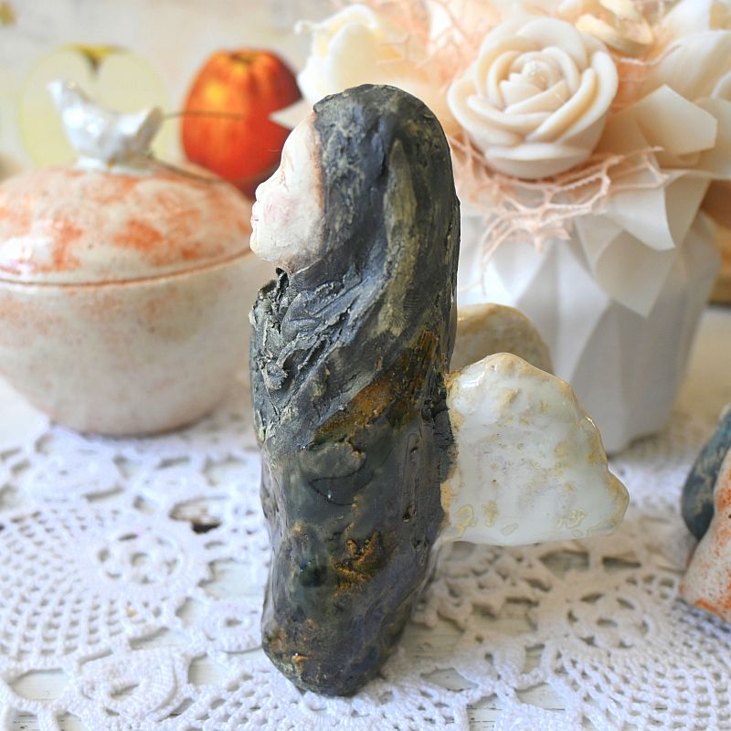 Anioł z ceramiki artystycznej – anioł w ciemnej szacieAnioł z ceramiki artystycznej – anioł w ciemnej szacie