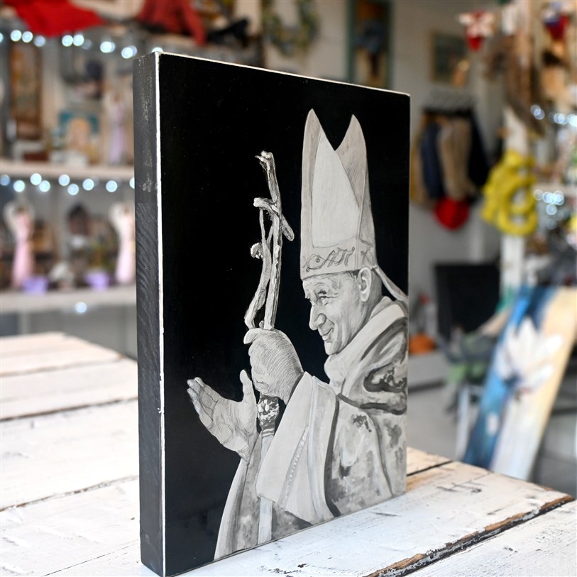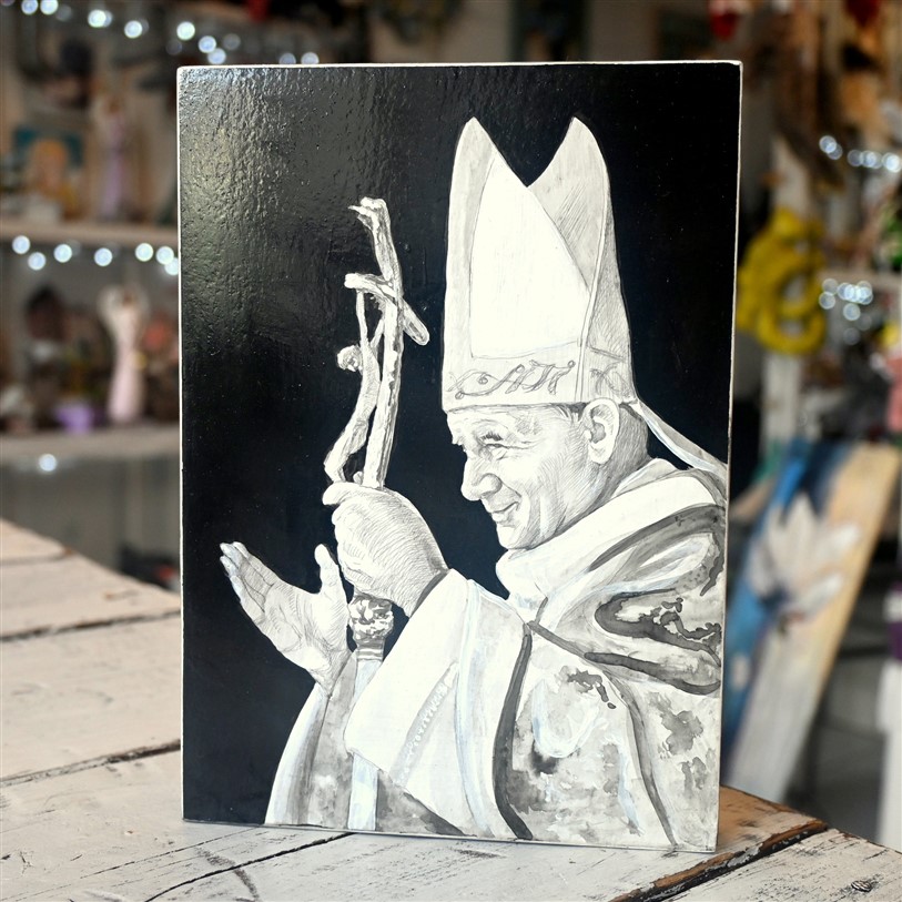 Obraz “Święty Jan Paweł II Papież”, ręcznie malowany przez naszych artystów, nie tylko jest symbolem wyjątkowości i uroku, ale także stanowi wyraz najwyższej jakości i staranności wykonania.